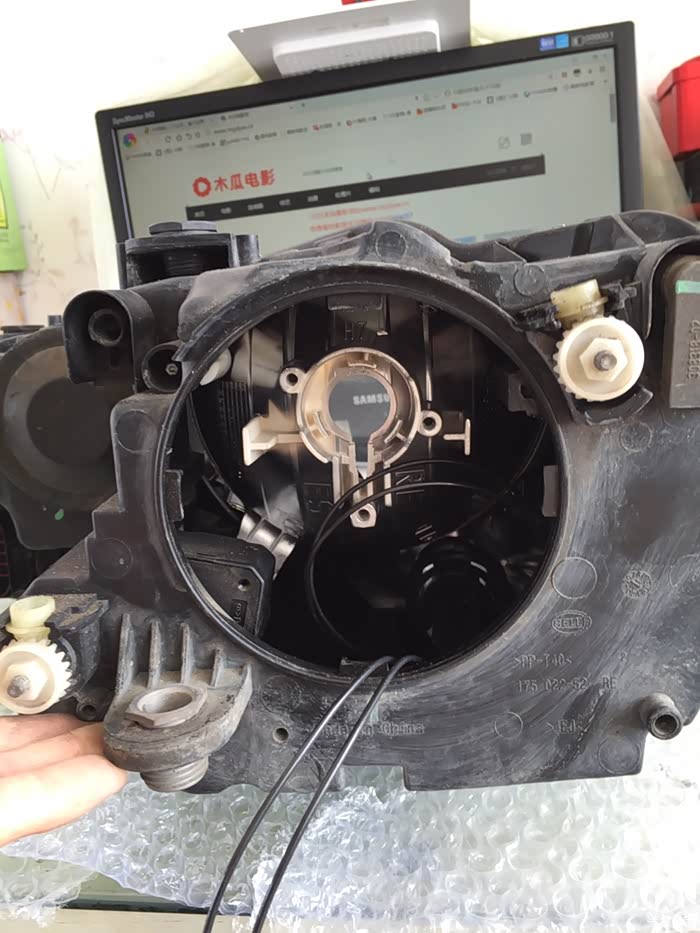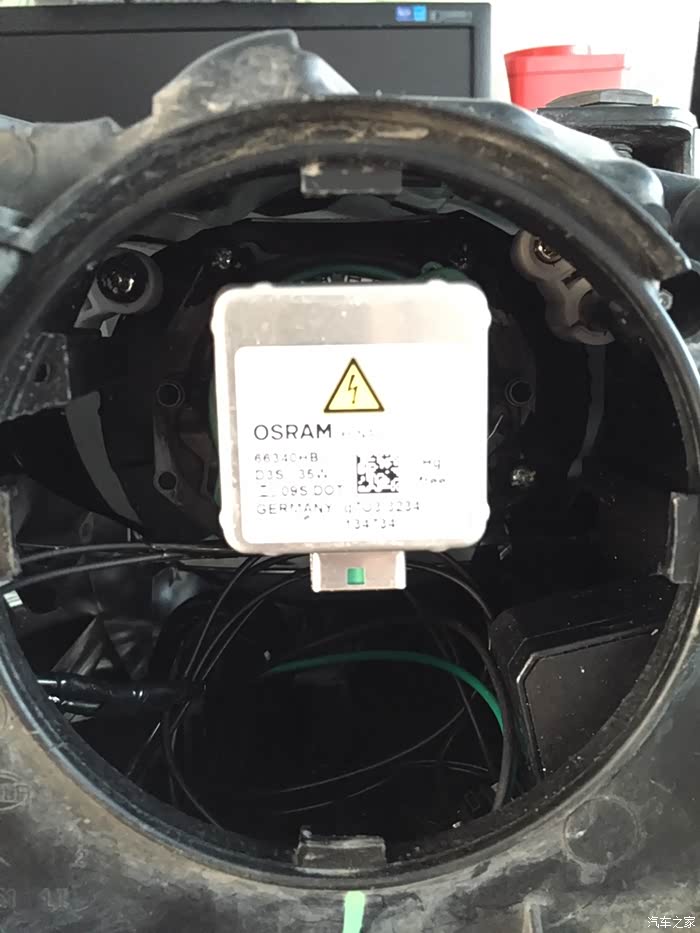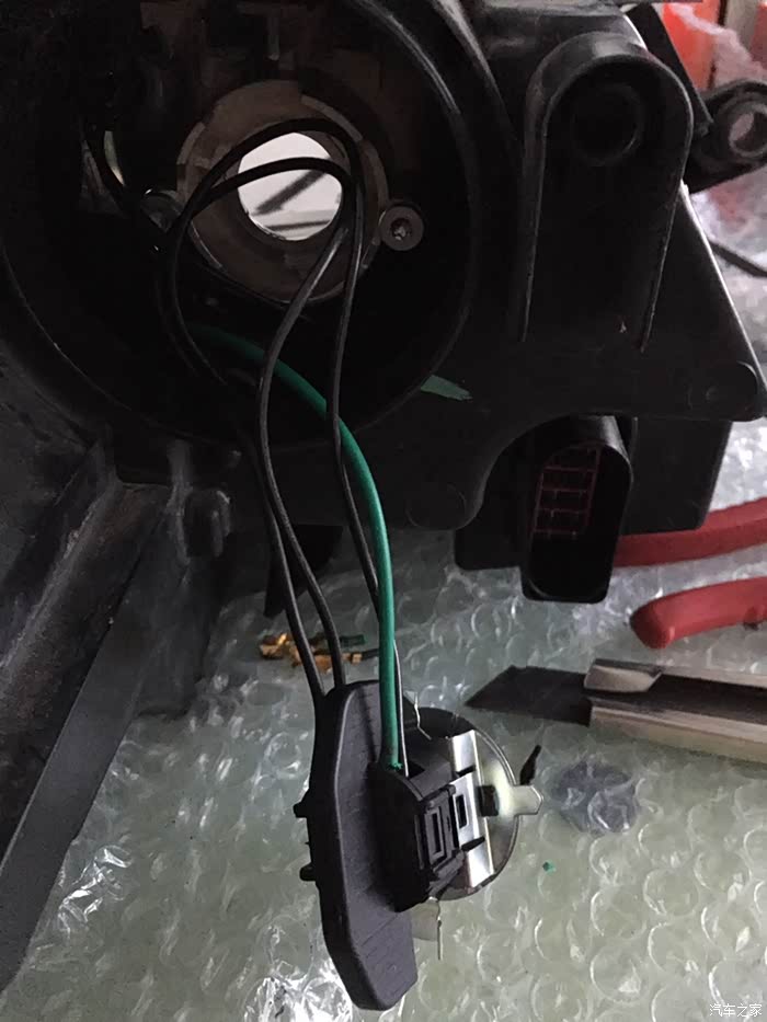 我是直接把原车近光插头剪掉(原车接头也用不上了)接上安定器,用焊锡加固,完活封上后盖