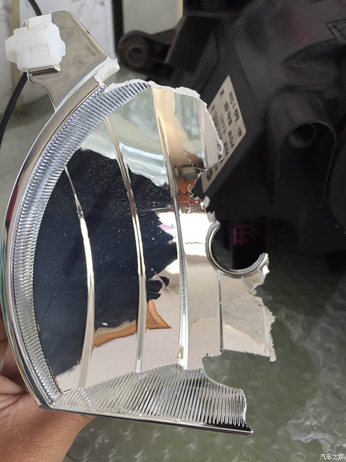 近光反光碗,先把上面小罩卸掉,直接从缝隙处用一字螺丝刀别碎,不会有那么多碎末,尽可量灯口朝下,要不碎末都进大灯里了