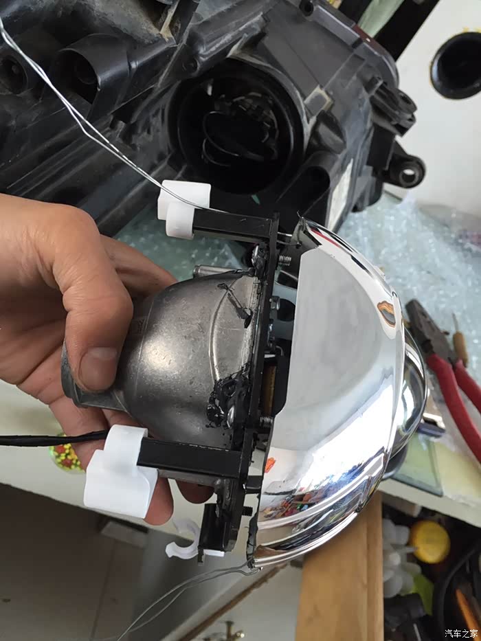 接下来修理灯罩,我用的这个支架是在透镜前面放着的,要在灯罩和透镜之间留出放支架的位置