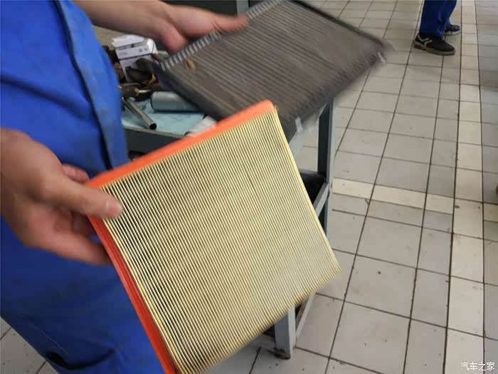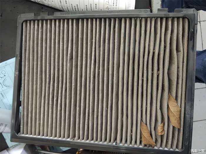 接着就是空气和空调滤芯检查。上次保养时已经更换了这两个滤芯,所以这次就是简单用压缩气吹扫后接着使用。
