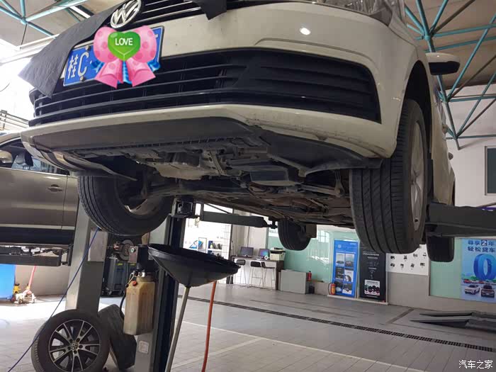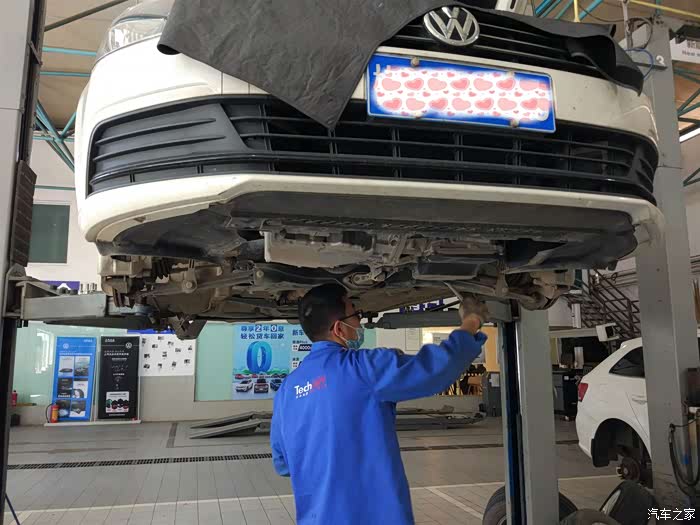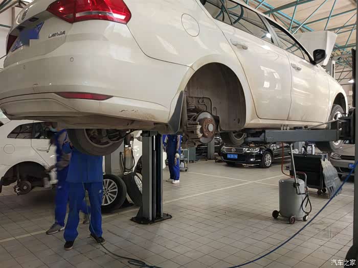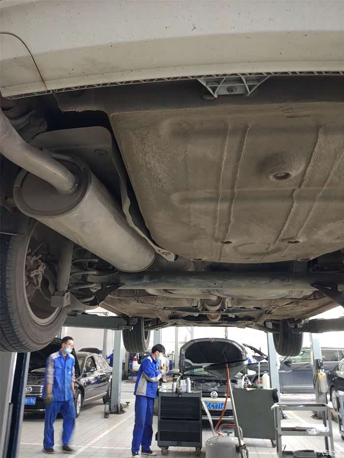 放机油及检查车子底盘部件。2017款朗逸使用的平台还是老款的PQ平台,在日常使用中,刮过两次底盘,这次检查除了发动机舱塑料护板有点开裂外,基本看不出刮的痕迹,底盘做工确实扎实。