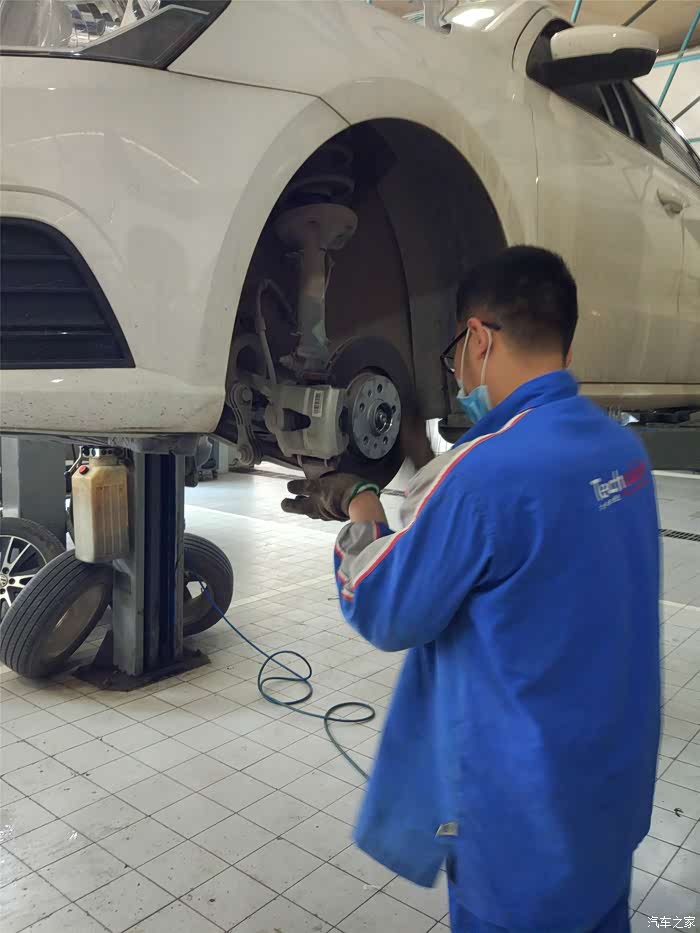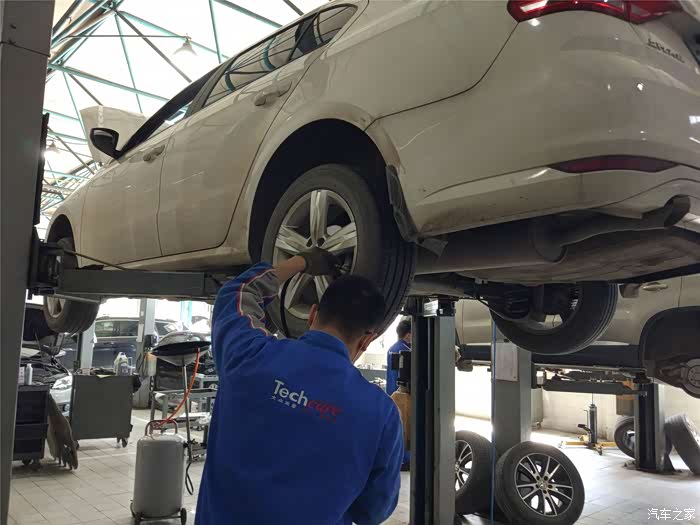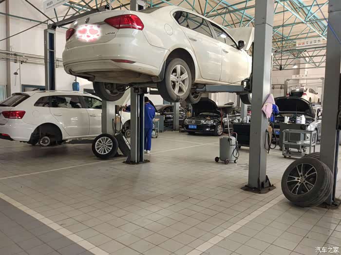 在车子进入工位前,售后经理会对车子外观进行简单检查,并对保养项目与车主确认后列出保养清单。现在一切就绪,车子由专人开入工位,进行保养,一般到这来车主就可以去喝茶了,而我喜欢到维修间对爱车多了解学习下。