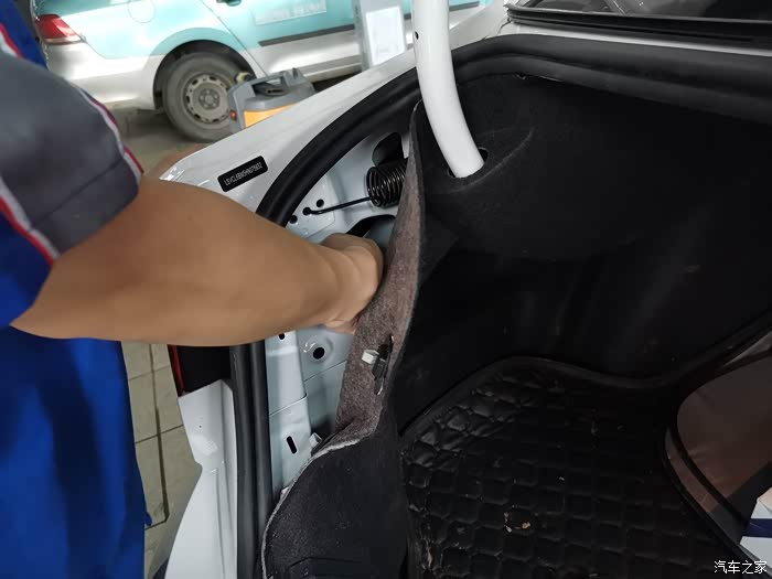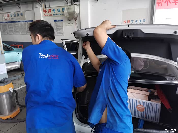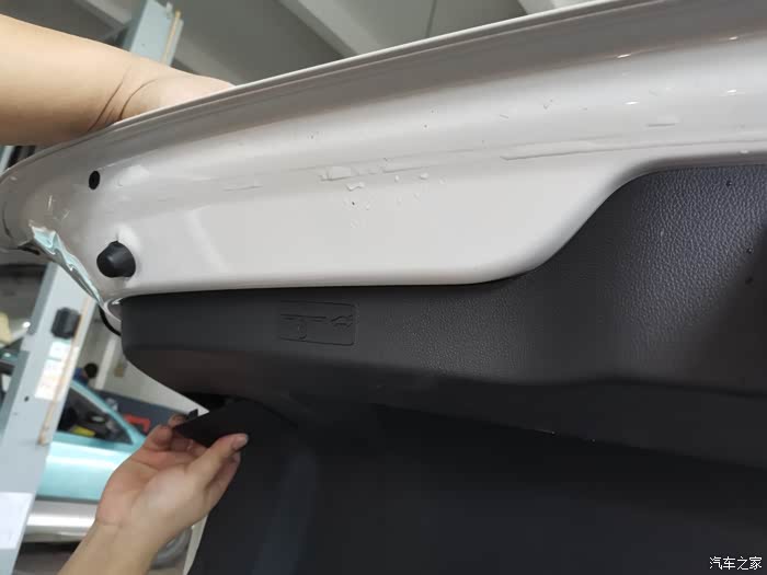 售后经理来了之后,对尾灯进行检查了一番,商量后是直接索赔三只新的尾灯,但是在和索赔人员的沟通中,告知是能去除虫子就不能索赔,所以就有了图中拆车灯的画面了。