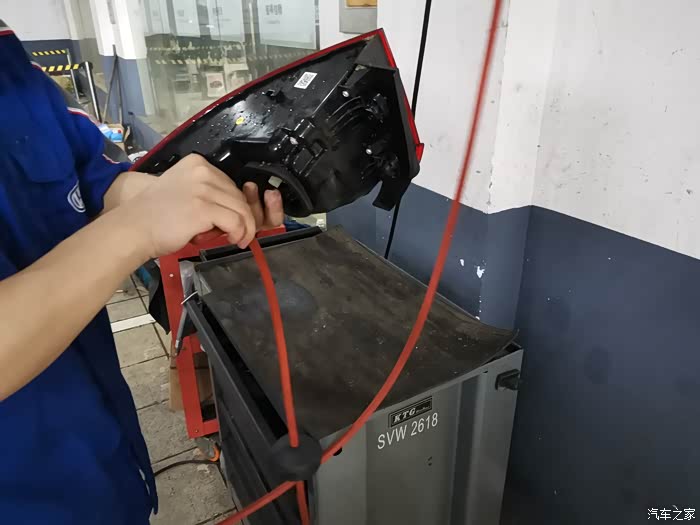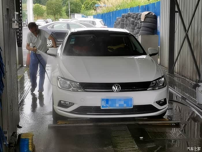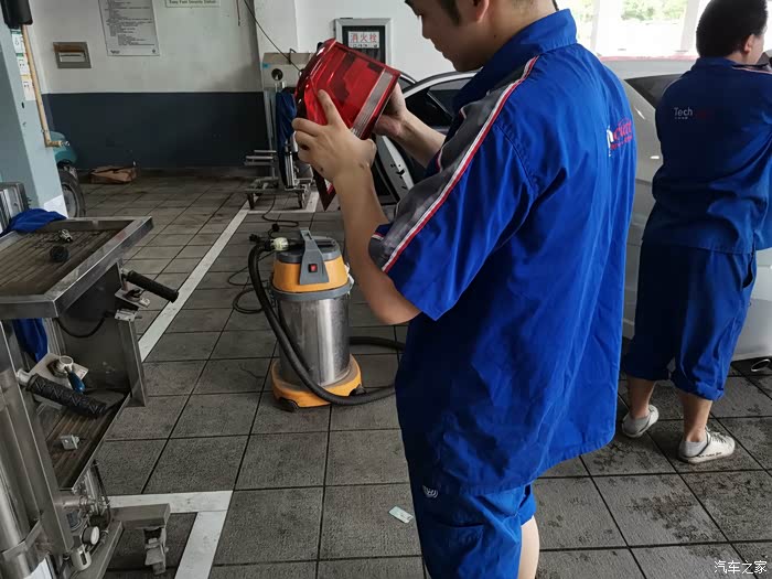 在4S店维修保养办事,临走前洗车是必需的事,工作人员见尾灯装好就将馒头开去洗车房了。