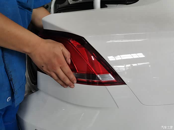 后备箱盖上的尾灯安装。