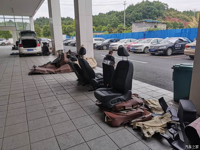 等待洗车的过程中,在4S大院里转转,好多泡水车在做维修清理。