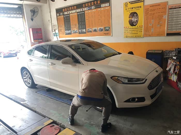 开蒙迪欧4年了,今天路过一家轮胎修理店了解一下价格,果断换了,原场跑了50000多,磨损还好,就是米其林轮胎老化严重开在路上实在不放心
