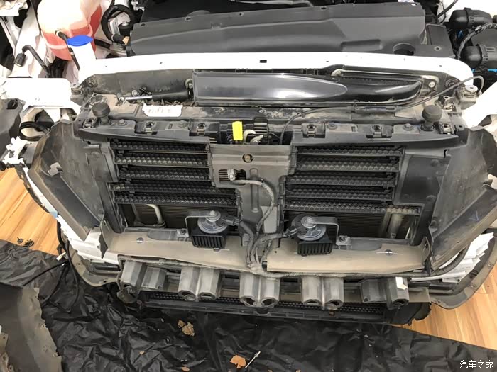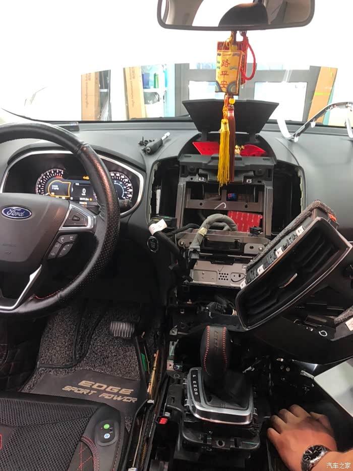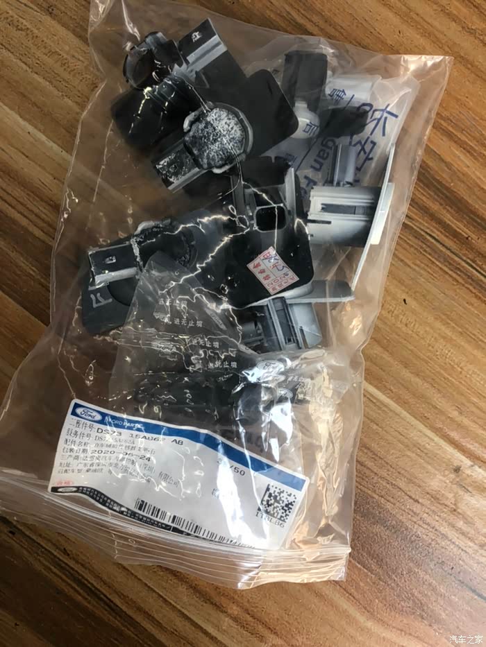 中间两个孔就不好看了,由于原来改前可视雷达孔打的大了,原厂探头没那么大,中间两个孔用了蒙迪欧的支架