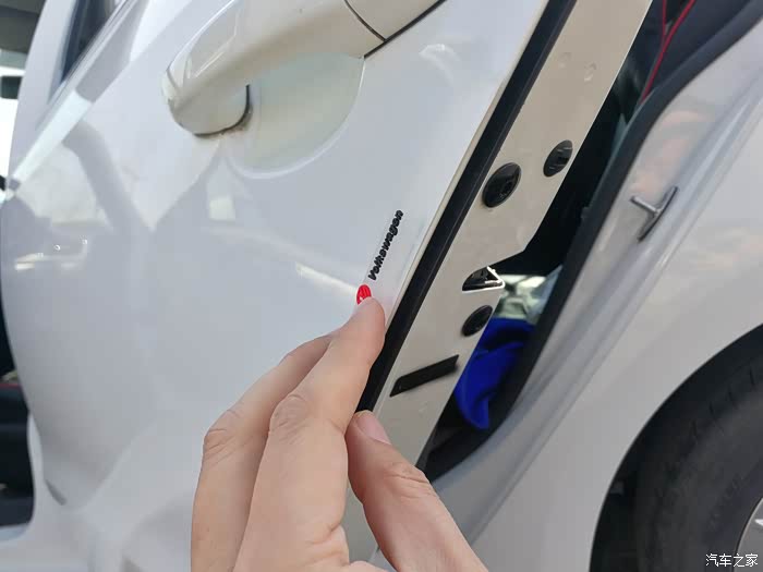拿出防撞条放在要贴的车门边上进行比样。