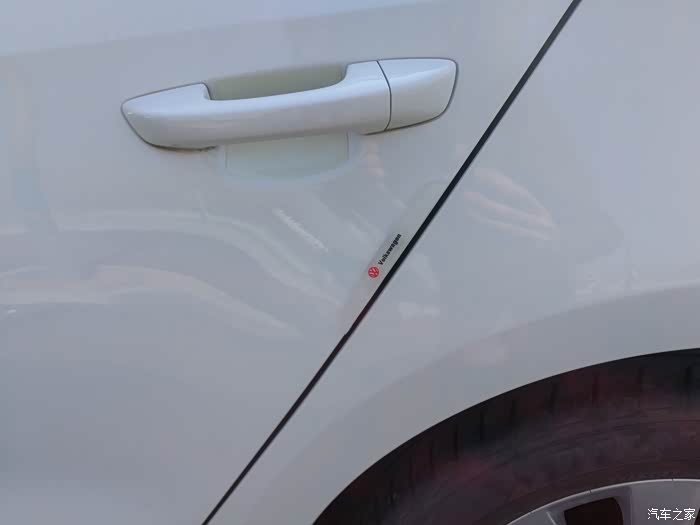 仔细观察发下,防撞条上部贴合很好,下部端点有点贴的靠边了,凸出来了,车友们看到了吗?