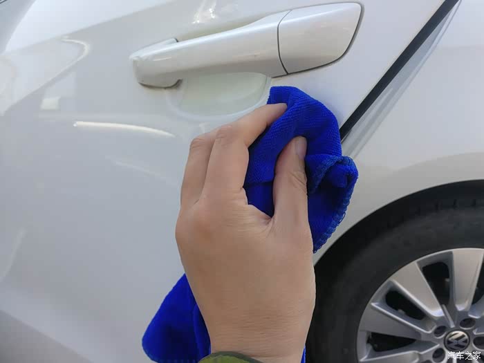 拿出毛巾把四个车门门边的灰尘擦掉。