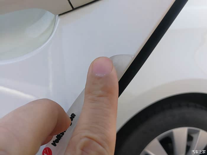 比对好要贴的位置后,开始揭开背面的3M胶。防撞条透明部位就显露出来。