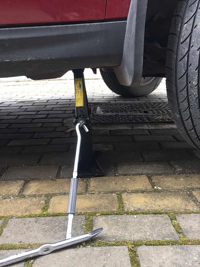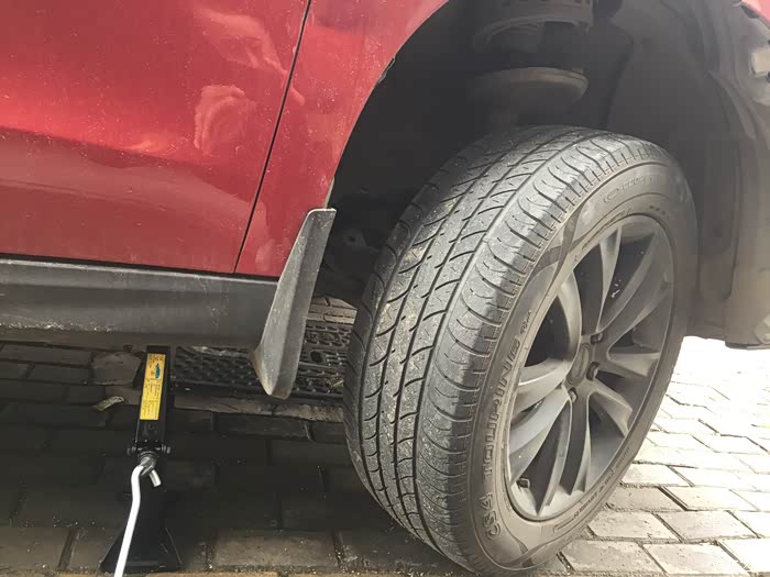 先升高车身,把轮胎抬起来,拉大轮胎与灯泡处的空隙方便动手。