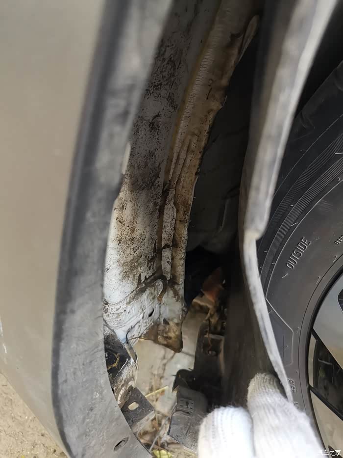 这是从发动机舱往叶子板内侧看去,所以每次看起来都还好,不是太多,也没有太在意