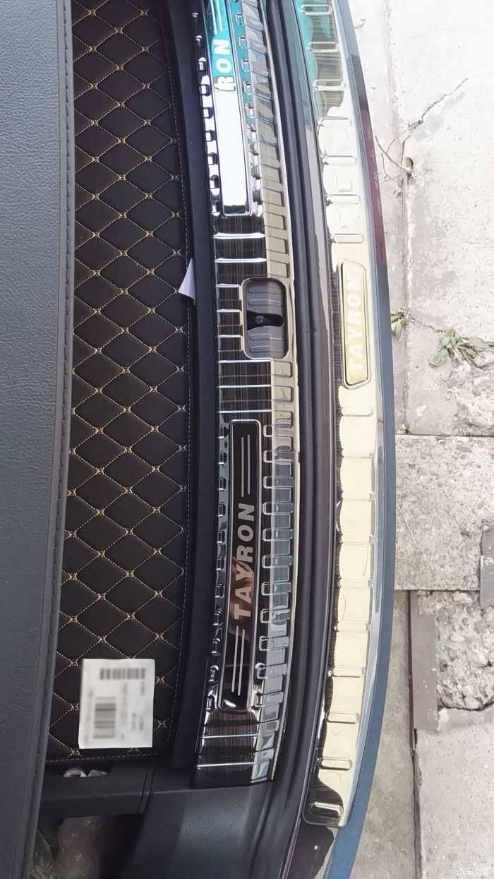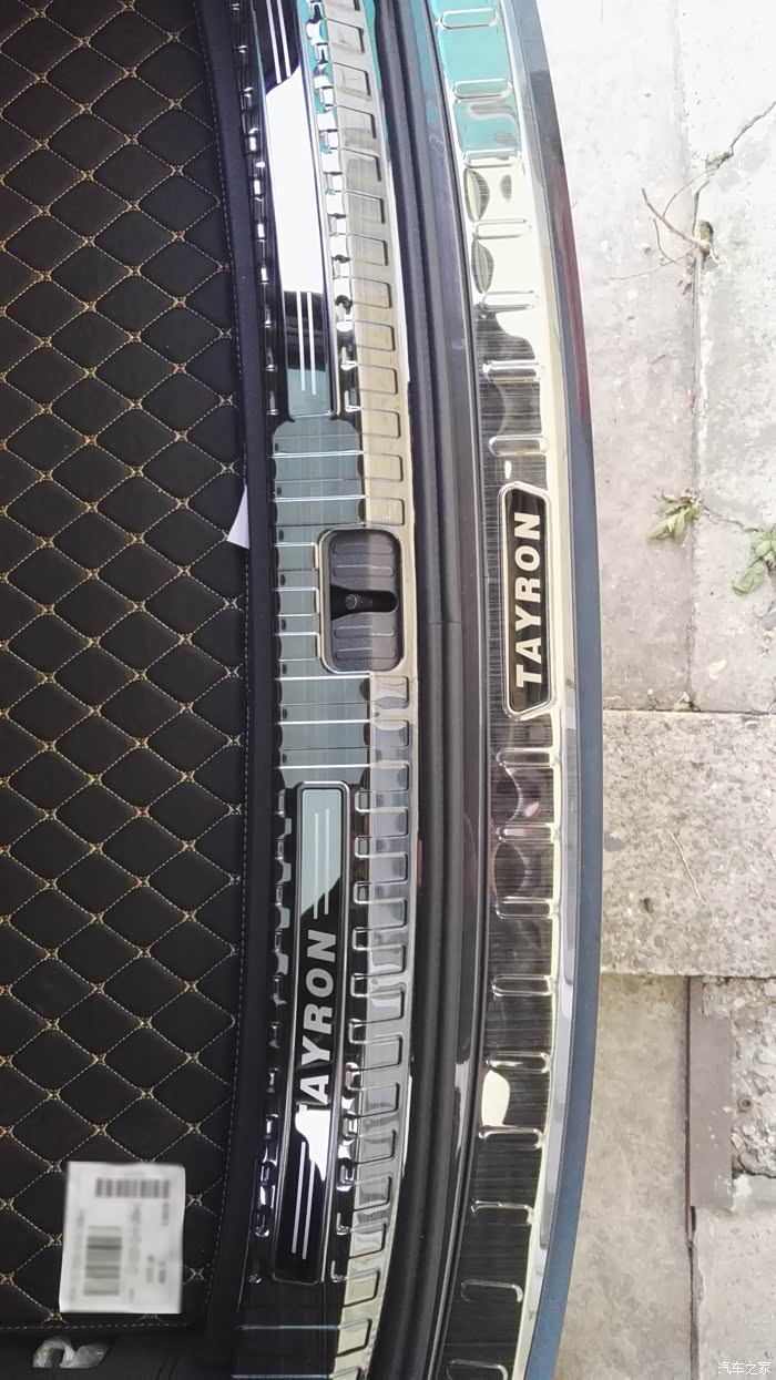 后备箱内置、外置护板。不锈钢黑钛拉丝,三处探岳标识显得太土(还好只是为了拍照而摆放,至少暂时不会贴上)。