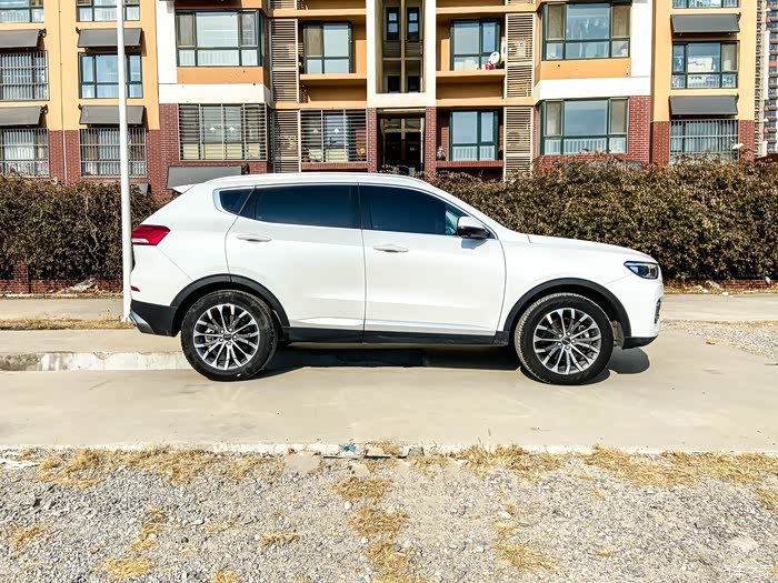侧面的哈弗H6,造型很漂亮,车身非常饱满,后部下探,运动感十足,SUV就应该有运动感。