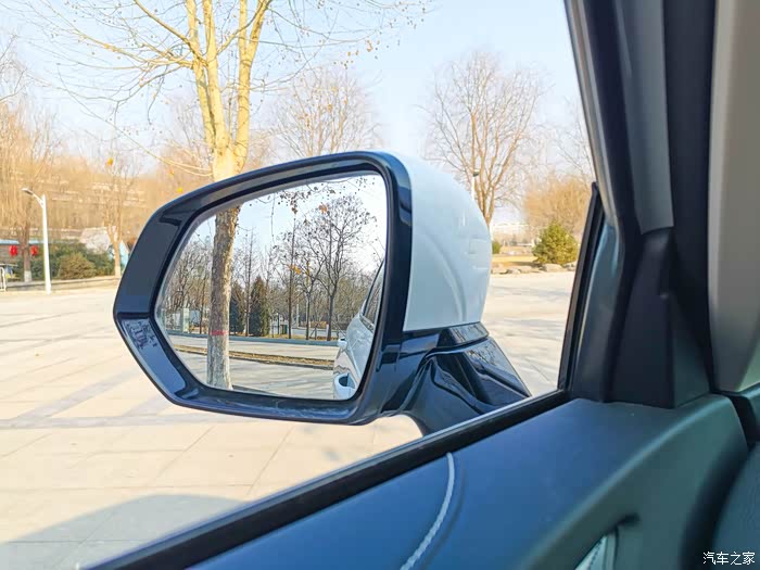 宽大的外后视镜,清晰明亮,把整个初春的景色都装了进来。