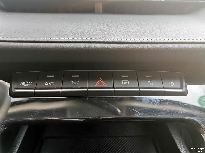 中控屏下面有一排机械按键,对于不太适应触屏操作的我来说,还是很友好的,主要是空调、360环视系统、双闪灯控制按键。