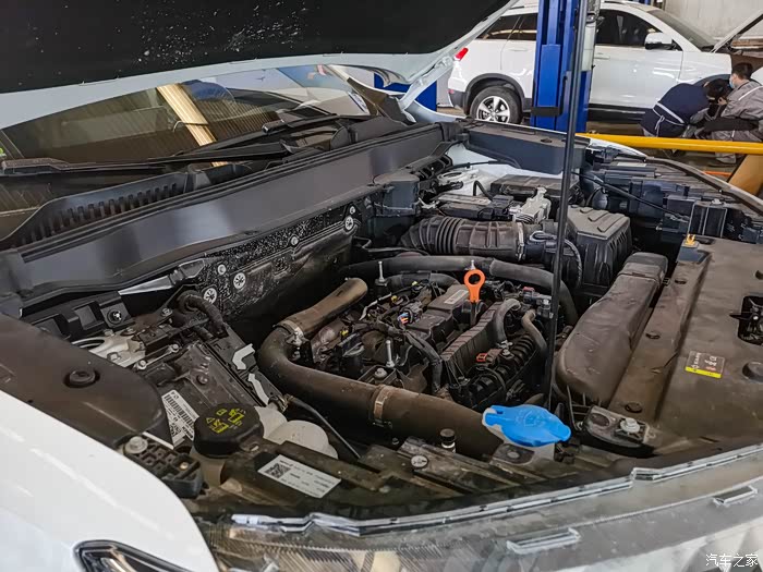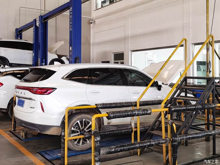 开进保养工位,因为首保,就是按照保养手册做的,没有添加别的项目,开始由于安全问题没有让走进去拍照。