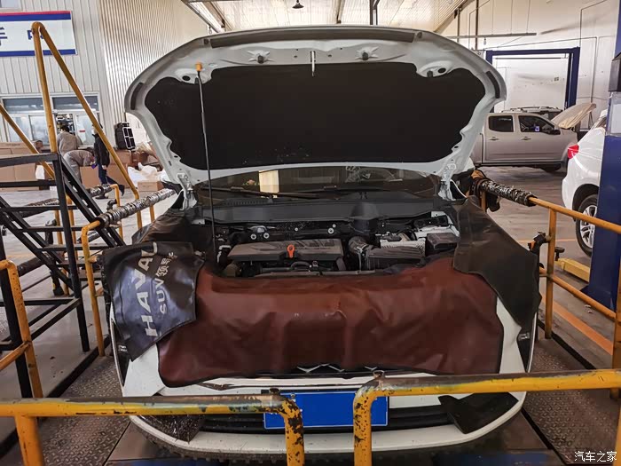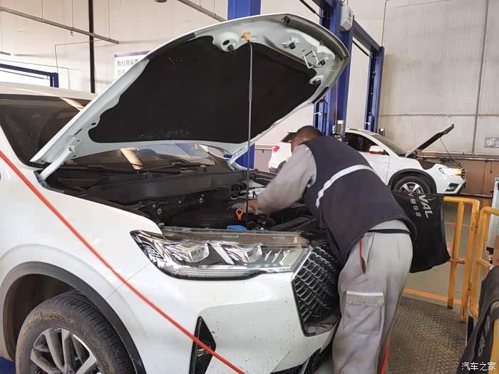 明天正是开工,开工前正好到了首保时间,今天给爱车做做保养,感受一下第三代哈弗H6的售后服务。首先感受到的是接车服务,一进大院就会有接待人员上前咨询,感觉心里暖暖的。然后,登记专业人员给你讲解保养内容以及大概时间,接着领你去休息区等待,休息区各种饮料、茶水供你选择,还可以打游戏、看电视等有种回家的感觉。因为没有预约,到店后等了一段时间才开始保养,整个保养过程大概花费了近两个小时,因为休息区服务很好,所以感觉时间过得也挺快的。第一次保养也想了解一下操作人员具体如何保养,所以在接待人员的带领下来到了操作车间,给我了一个安全帽,并讲解安全事项。下面由我分享一线爱车的保养过程。