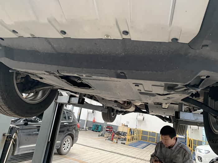 检测完车头位置,就要将地盘举起来,看一下群低和轮胎以及换机油了他们