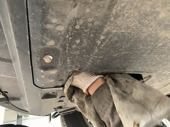 借助手电筒的光,检查底护板里面的螺丝等部件