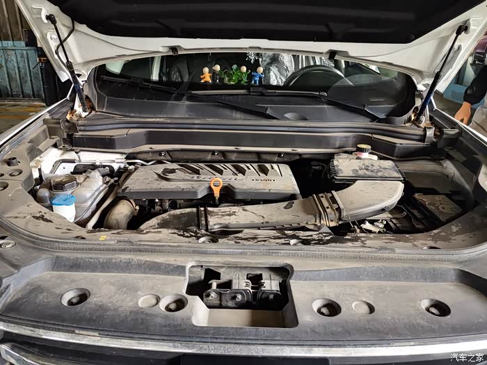 发动机舱从来没清理过,有点灰尘了。