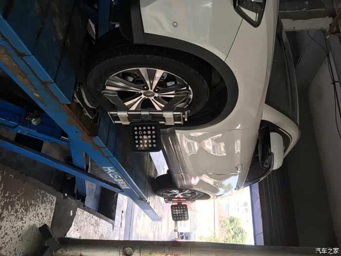 两侧安装完毕,装上四轮定位工具,开始调整。