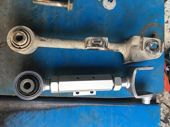 拆下来的原车拉杆,拿它和新买的一对比,原车件就是一个弟弟,足足粗了一倍。