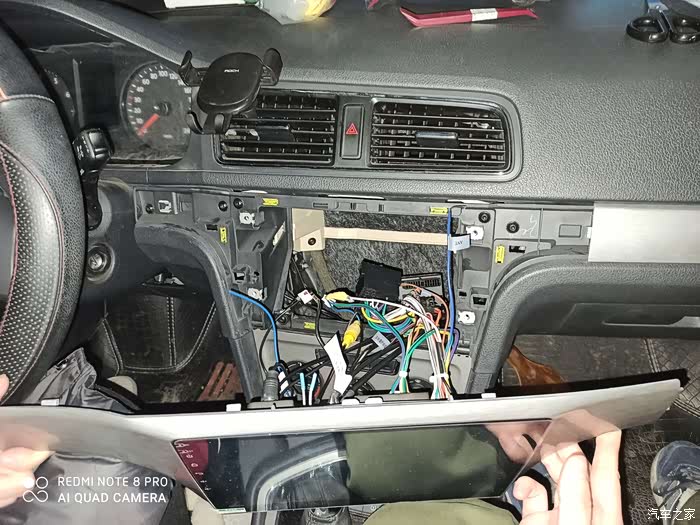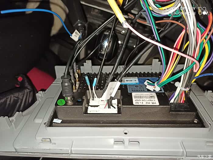 至此,所有器件全部安装完毕。这个时候就可以将带大屏的前面板直接扣在原卡簧上进行固定。检查下倒车影像正常后,固定好大屏,新的车机正式开始服役。