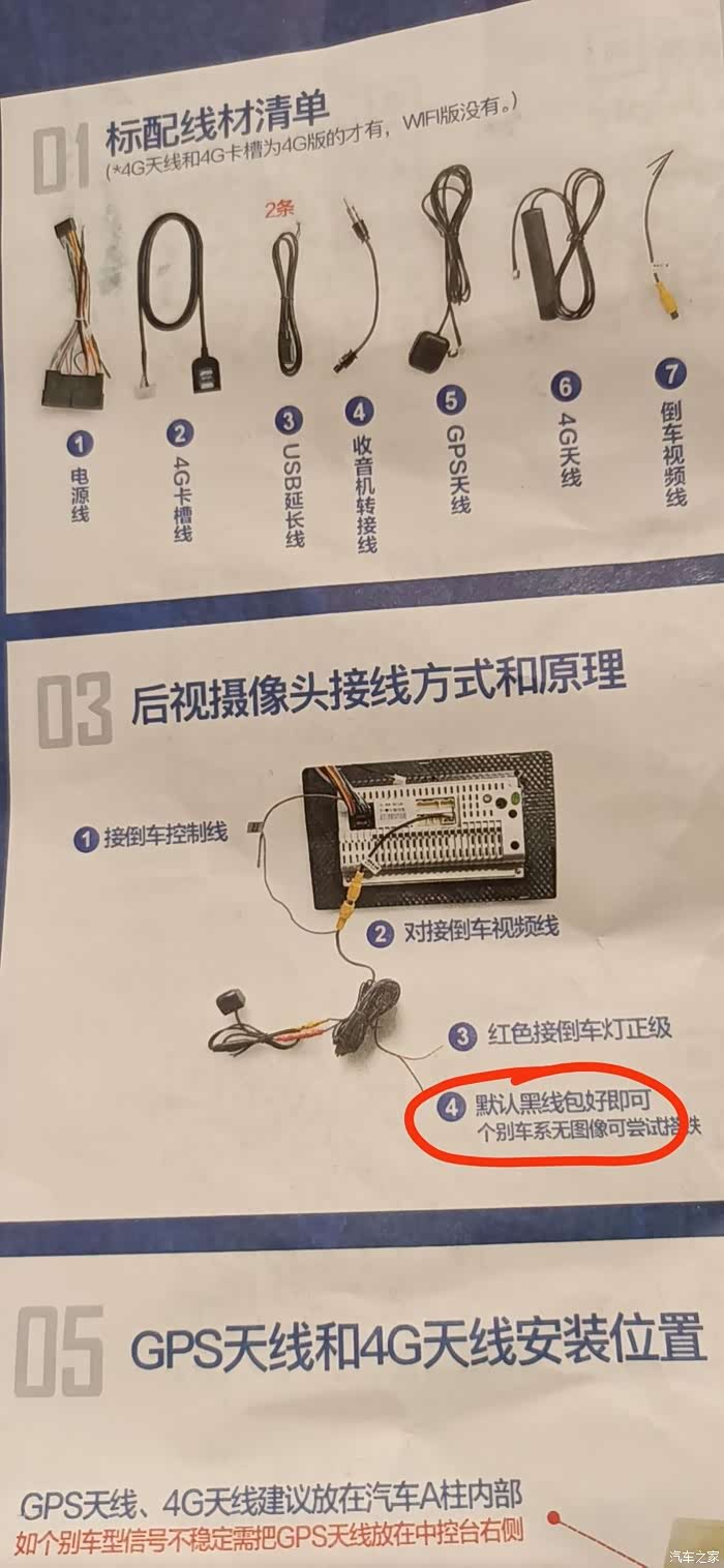 线材清单,其中4G天线也是2根,因为我是高配导航,8核心SC9853i,4G+wifi版本。