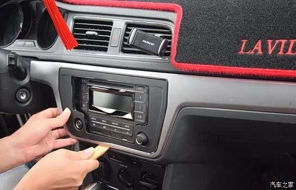 1、拆卸前面板。朗逸的前面板由卡扣固定。所以拆卸前面板只需用撬板将前面板撬下来就行了(翘板沿一个方向直线翘拆)