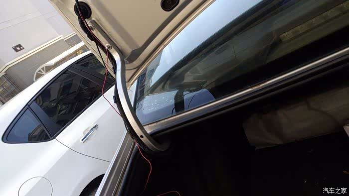 然后,顺着后备箱支架和线束走上来。