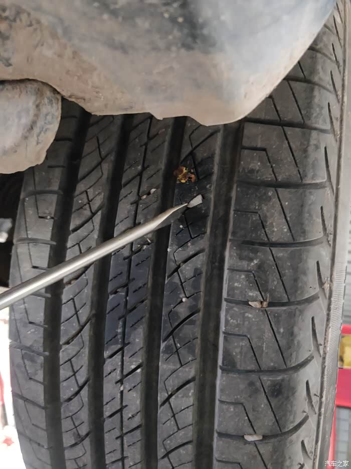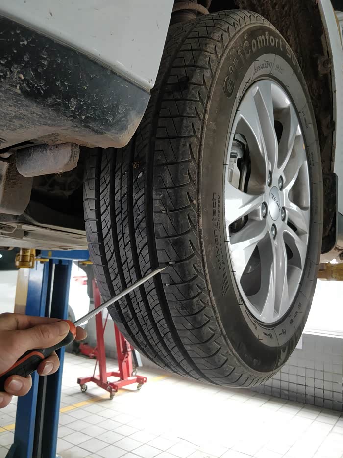 保养师傅提醒到轮胎中的石子要定期清理,高速行驶遇到硬物有爆胎隐患。
