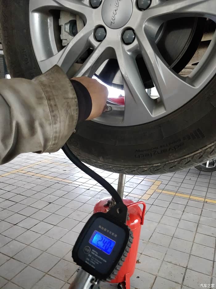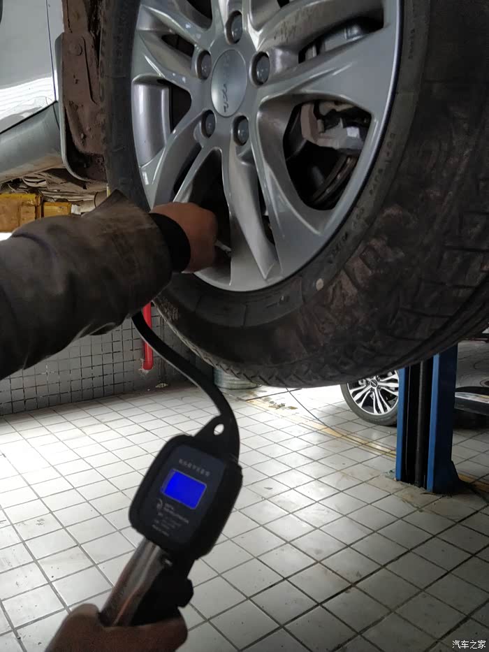 除了常规保养,特别给师傅说回家上高速的需求,师傅重点对四个轮胎进行了监测。