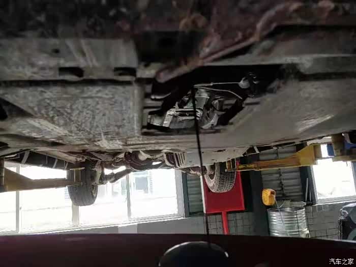 开始放机油了,师傅趁空先检查了一下底盘。