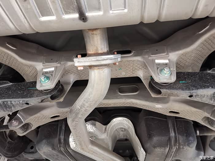 提车时验车只验外观,内饰,换机油间隙,正好趁机瞧睢车底情况,做工还是扎实的,肉眼可见,铝合金横纵梁,底盘装甲,吸音保护都有