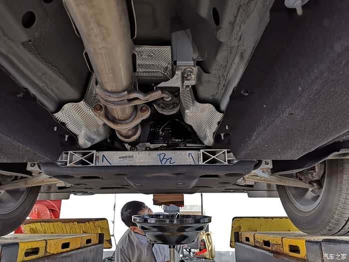 4000公里,这机油看上去也挺黑的,也许是磨合期的原因?这里要为4S维修师傅点赞,放油时很细心地垫上一块纸板,这样就不容易溅脏车底,很注重细节