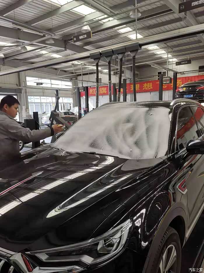 擦干净雨刮片之后,师傅给前挡玻璃又上了一层厚厚的面膜,彻底清除污渍,油渍