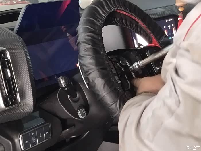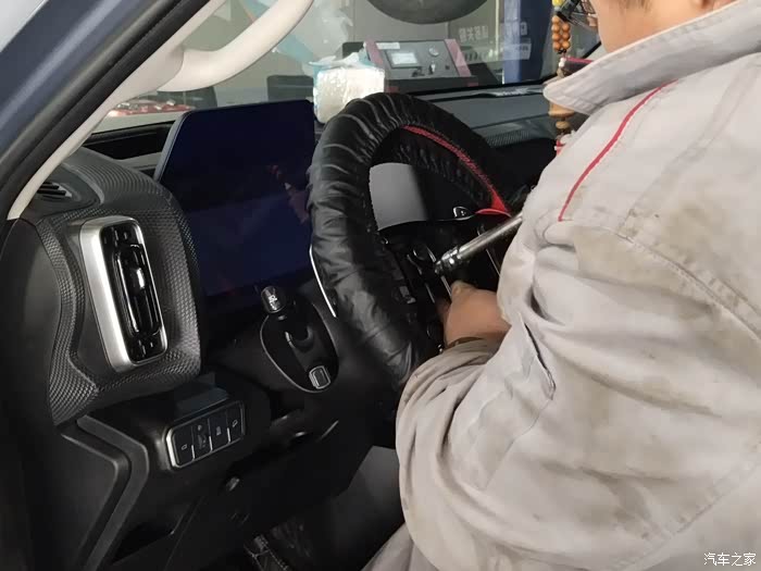 拆机工具备好,拆除过程还挺复杂的,首先要将左侧边的橡胶拉开,然后用小螺丝刀将各个卡扣一一拆开,小哥还是很细心的,进而将方向盘下侧盖板全部拆除,然后将方向盘各电路全部断开,各种螺丝一顿拧啊,方向盘拆除
