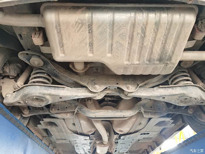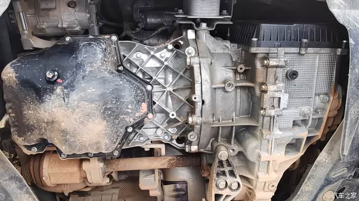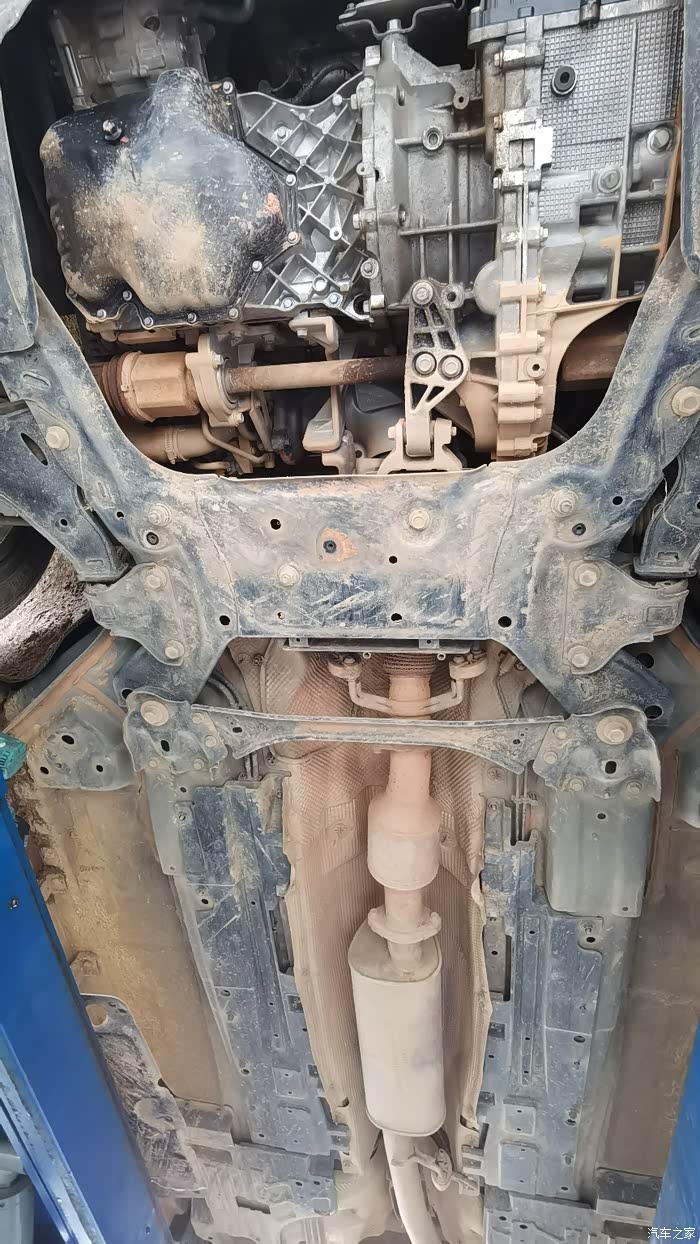 升起车后拆开发动机护板,拍照变速箱,挺干净的,已经四年十二万了