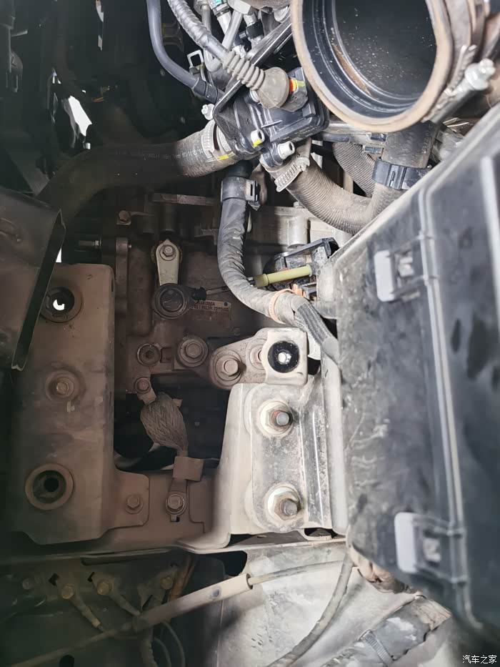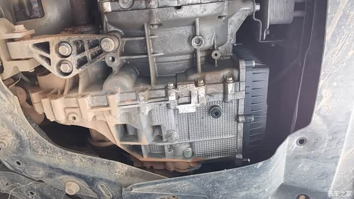 再来个特写,变速箱上面那个黑色的螺丝,要换油就是拧开这个黑螺