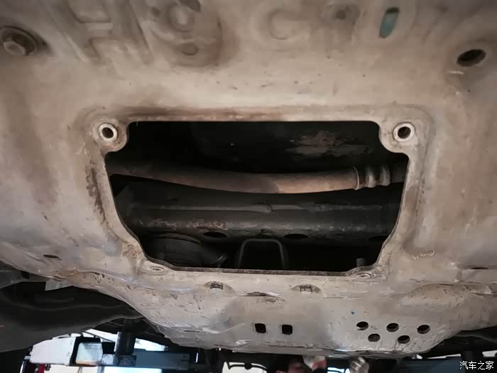 打开护板放油口准备放掉旧机油,暂时不换油滤