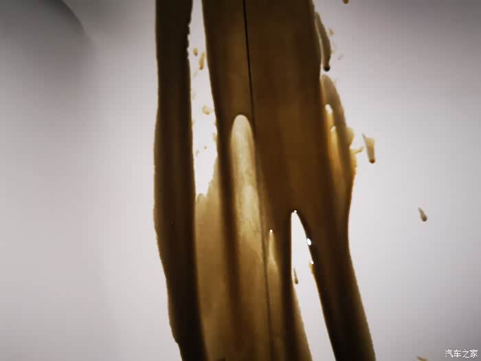 清洗完成后再次放油,清洗油比较稀,加上已经在车内被加热了,放出来的感觉像水一样,比较黑,不知道是不是就是洗出来的脏东西。