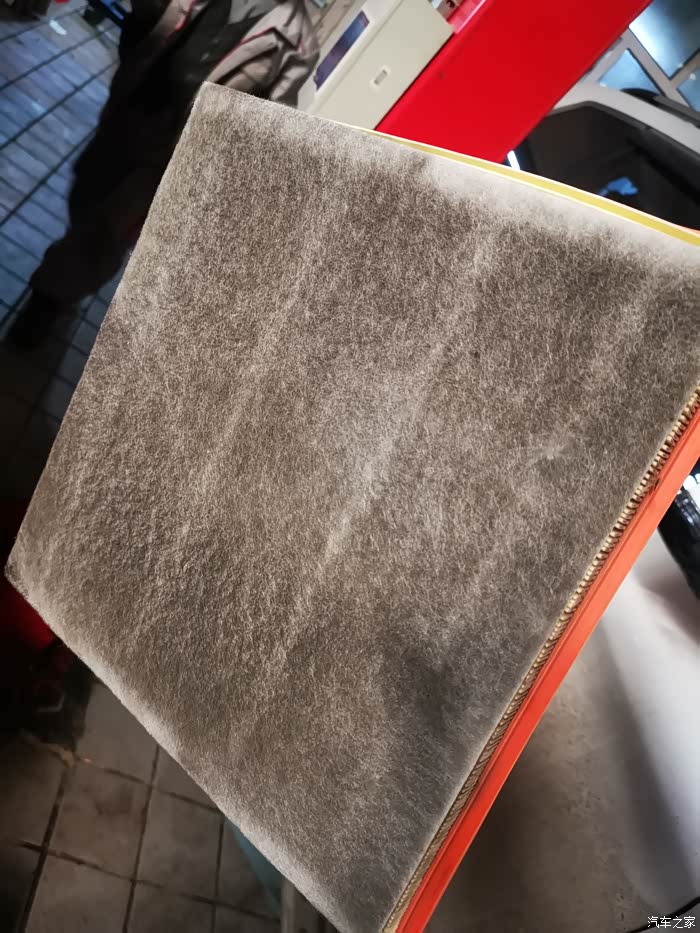 7500公里更换下来的空滤滤棉一侧 太脏了