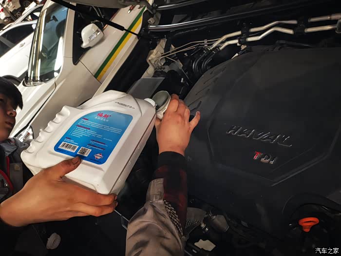 旧机油放光之后,拧上油底螺丝,不用换油滤,加注等量的清洗油,然后启动车辆,怠速15-20分钟进行清洗
