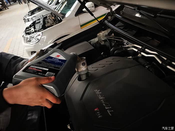 清洗油放光之后,拧上放油螺丝,更换新机油滤,加注新机油。检查油尺后,机油更换完毕。