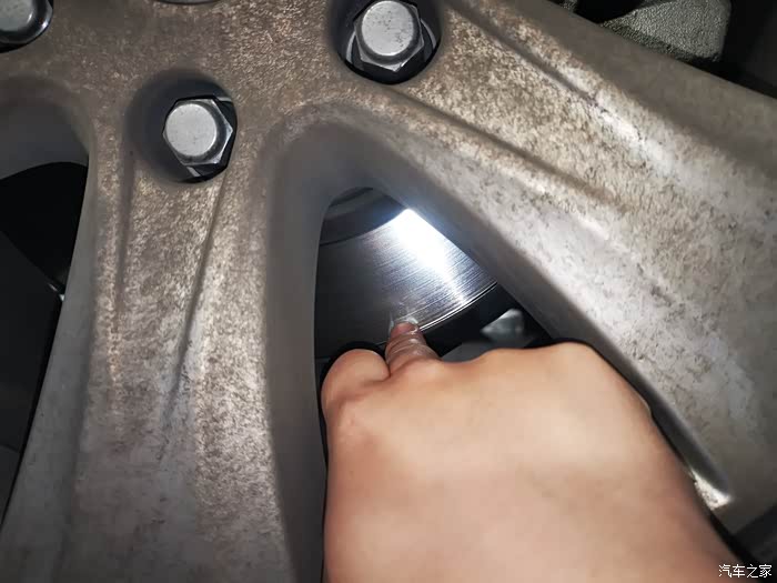 借着车子升高放油的时候,检查一下刹车盘面,没有明显的不均匀磨损。