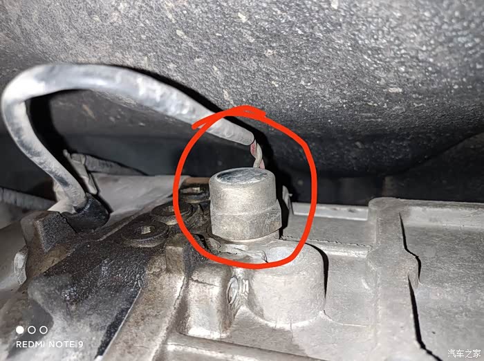 红色圈内是倒挡开关接头。貌似变速箱有点点渗油。