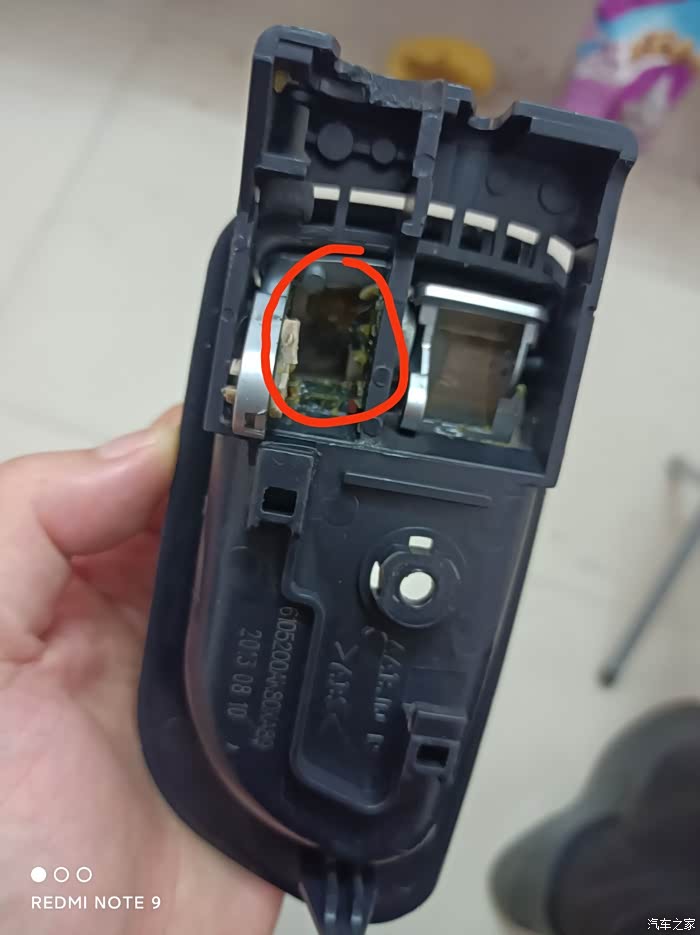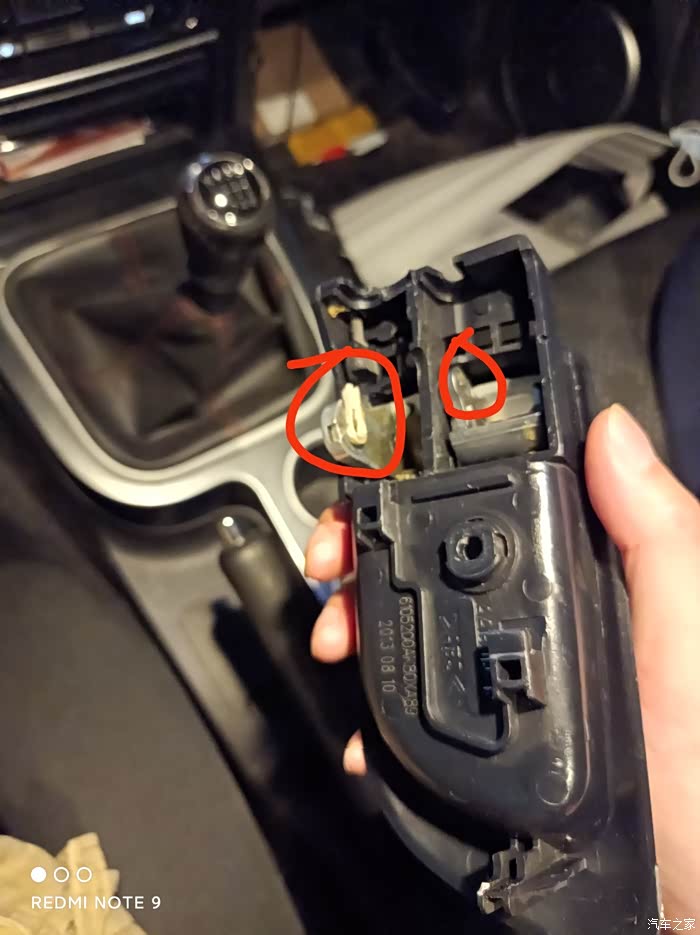 撬开之后可以看到两条线连着把手。当时光顾着整了忘记拍照了。